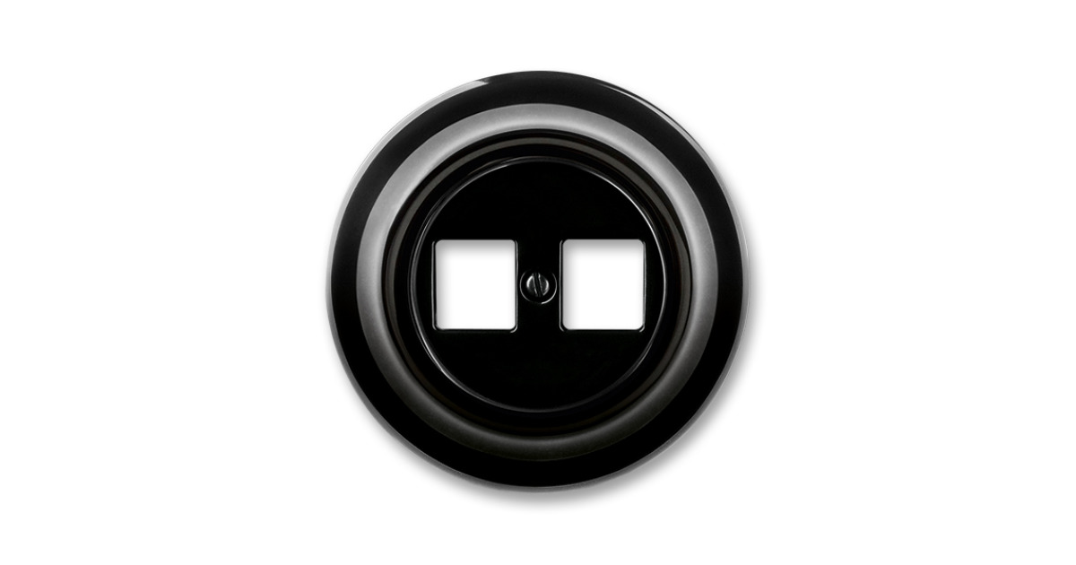 GNIAZDO TELEINFORMATYCZNE PODWÓJNE -DECENTO-CZARNY PORCELANA