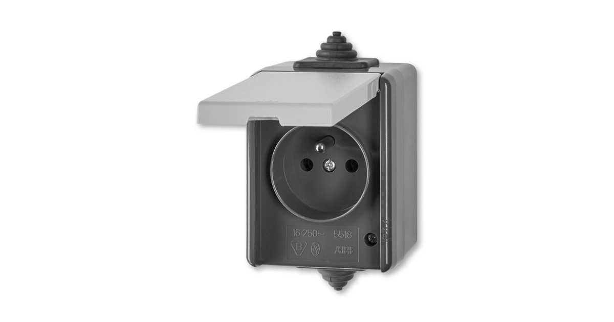 GNIAZDO Z KLAPKĄ, PRZELOTOWE IP 44 -CLASSIC-SZARY