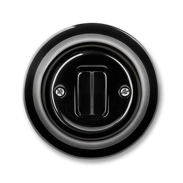 PRZYCISK PODWÓJNY Z ZACISKIEM WEJŚCIOWYM I 2 KLAWISZAMI PORCELANA-DECENTO-CZARNA PORCELANA