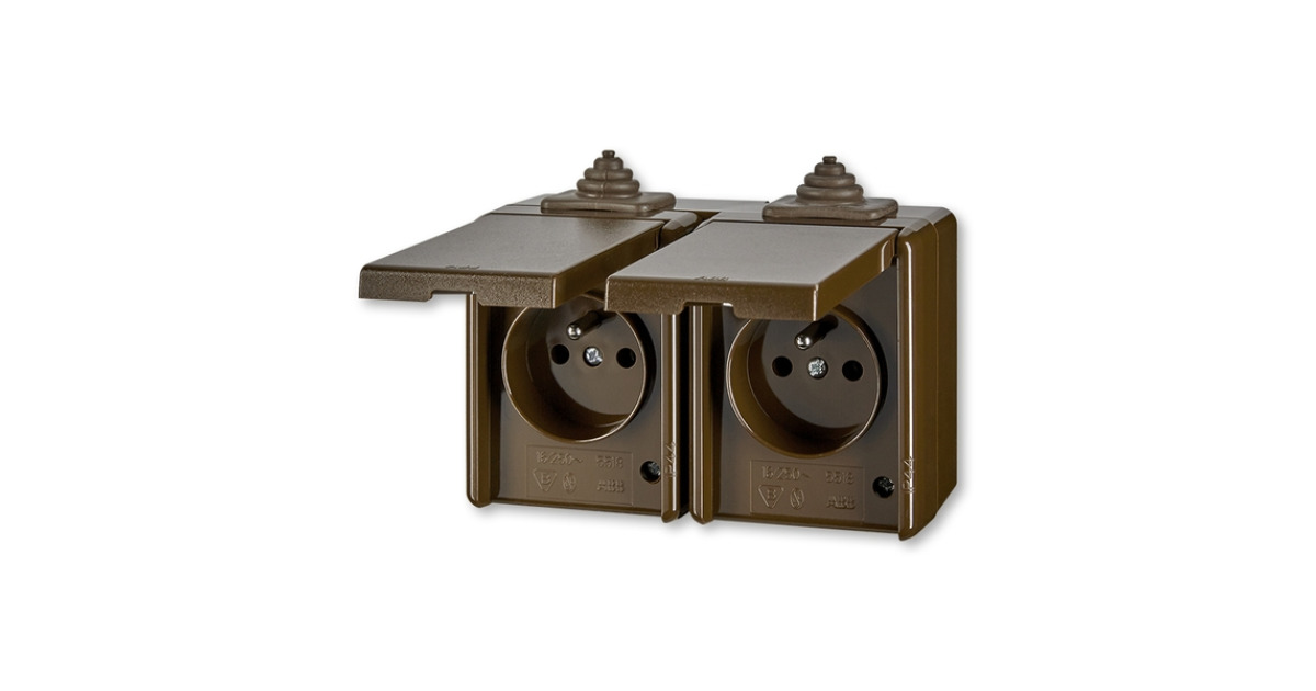GNIAZDOIAZDO Z KLAPĄ PODWÓJNE PRZELOTOWE IP44-CLASSIC-BRĄZOWY